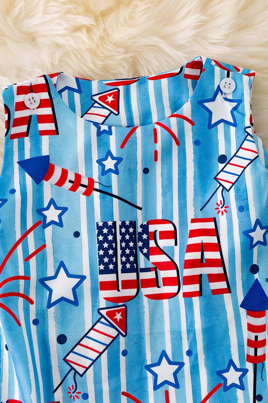 PATRIOTIC PRINTED BOYS BABY ROMPER W/SNAPS. RPB40176 LOI: 0-3M