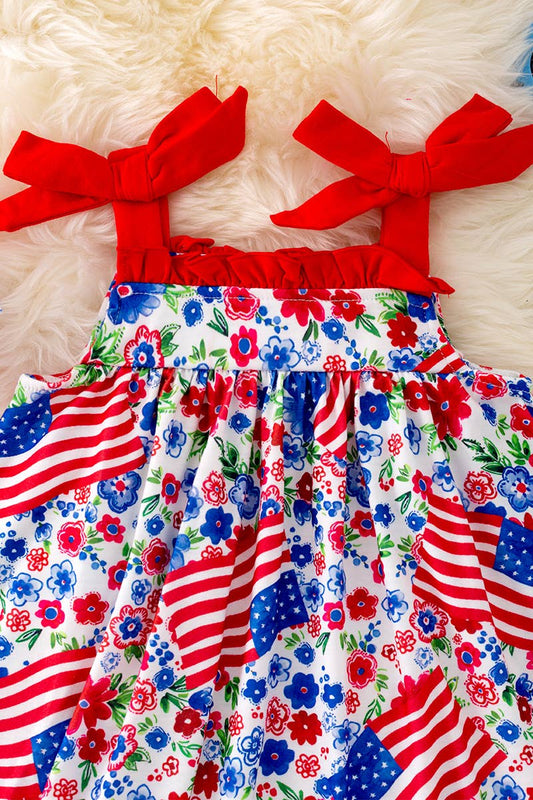 PATRIOTIC PRINTED DRESS W/RED RUFFLE HEM. DRG41504 SOL: S