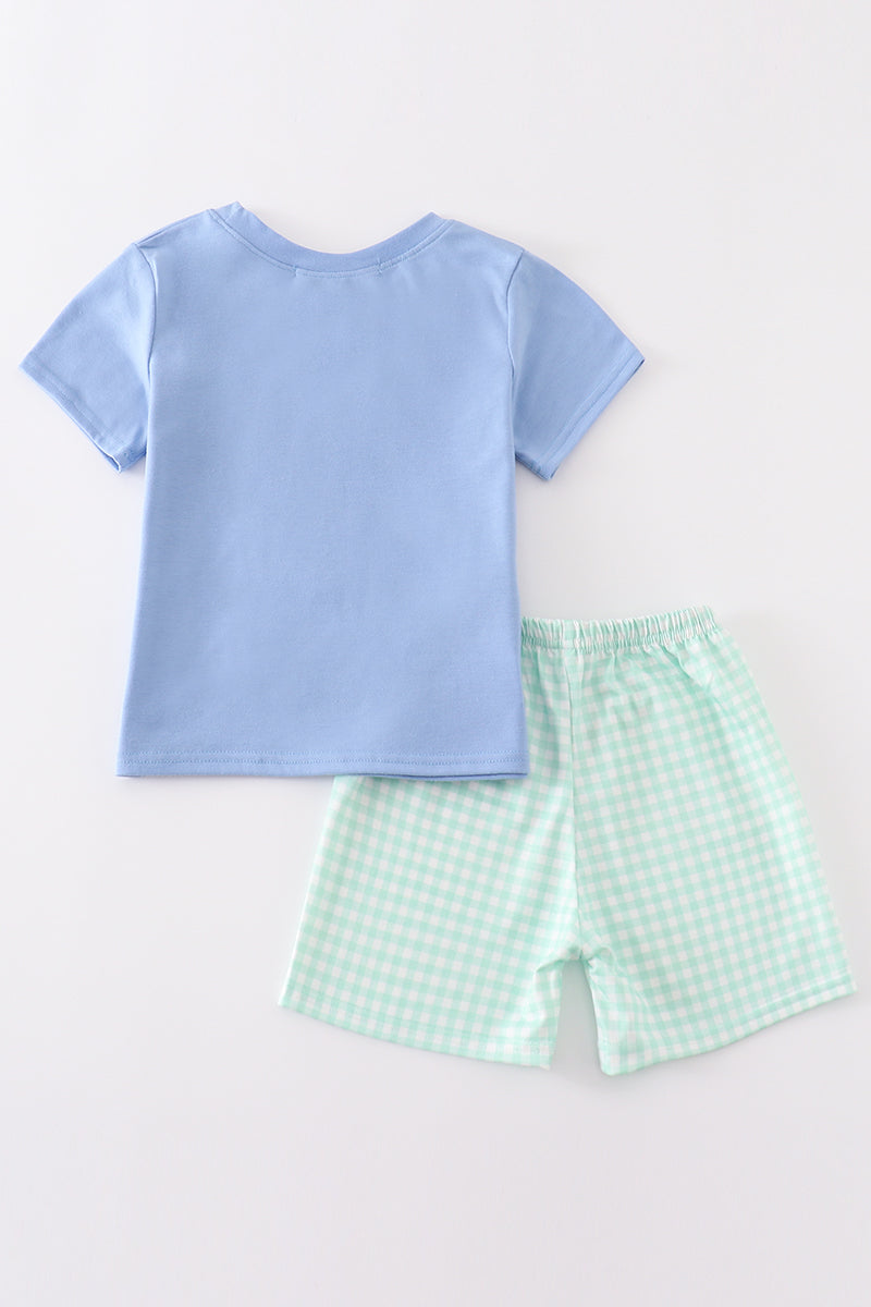 Get ready to make a splash with our Blue Beach Puppy Embroidery Boy Set! This adorable set includes a comfortable shirt and shorts, both with a cute puppy embroidery design. Perfect for a day at the beach or a casual summer outing. Grab yours today!
