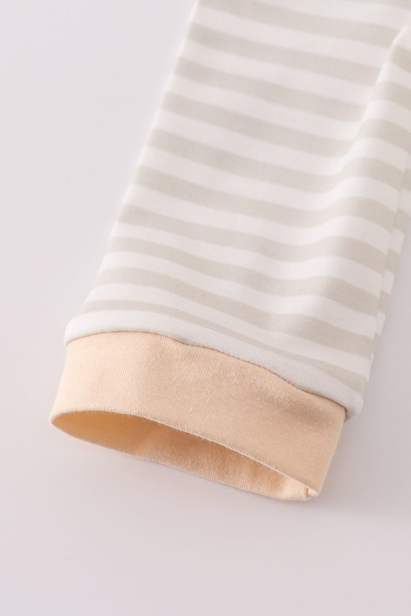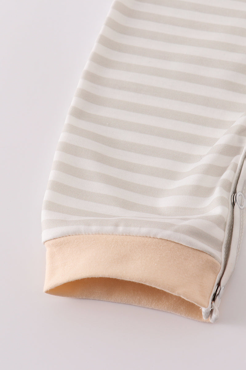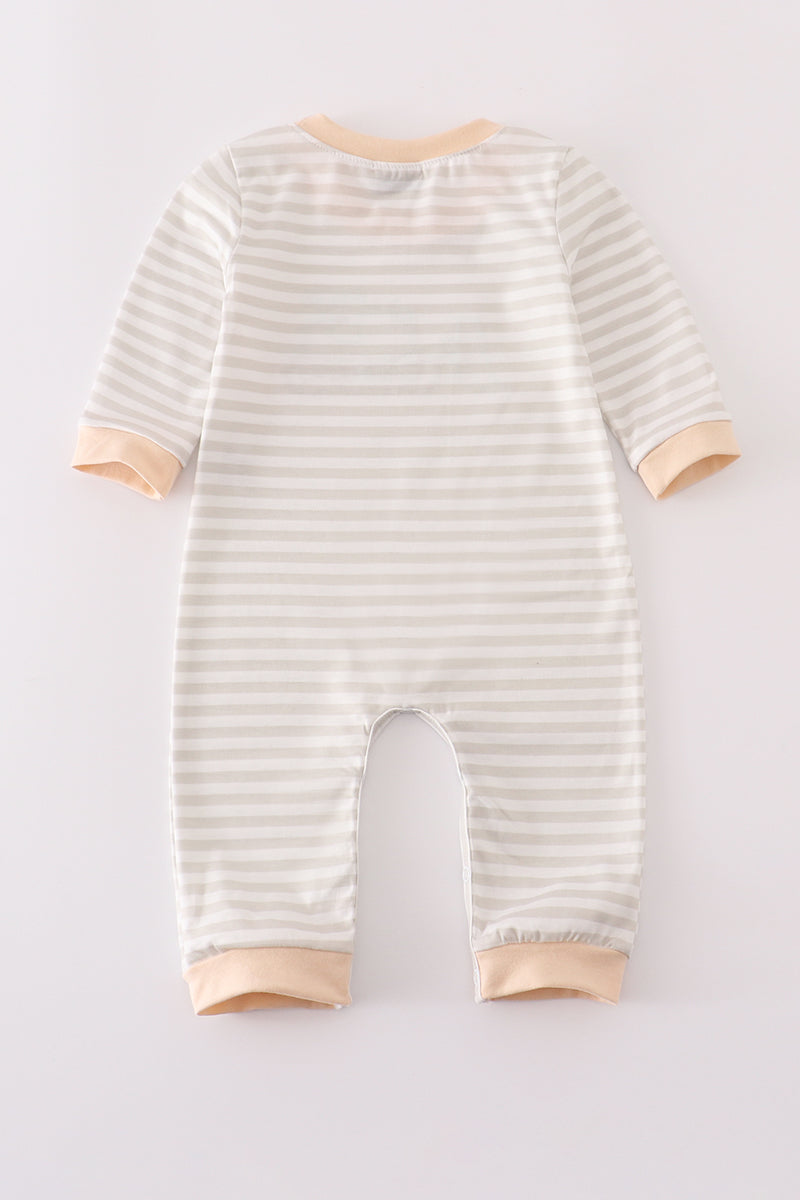 Cream excavator applique stripe romper