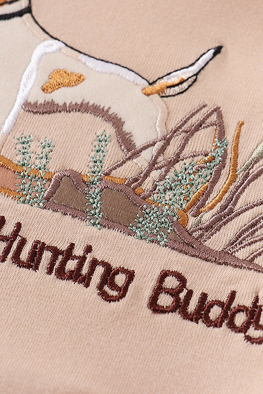 Celebrate the bond between father and child in this adorable Daddy's Hunting Buddy Embroidery Boy Romper. Your little one will look stylish while matching with their hunting-obsessed Dad. This romper is made of soft, comfortable fabric for all-day wear.