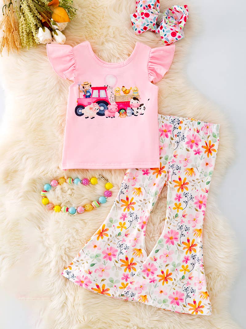 Discover the perfect outfit for your little farmer in the making with our Farm Girl Pink Angel Sleeve Top and Floral Pants. Featuring a cute animal print and delicate angel sleeves, this top is both stylish and comfortable. Paired with the floral pants, this outfit is perfect for a day on the farm or a casual playdate