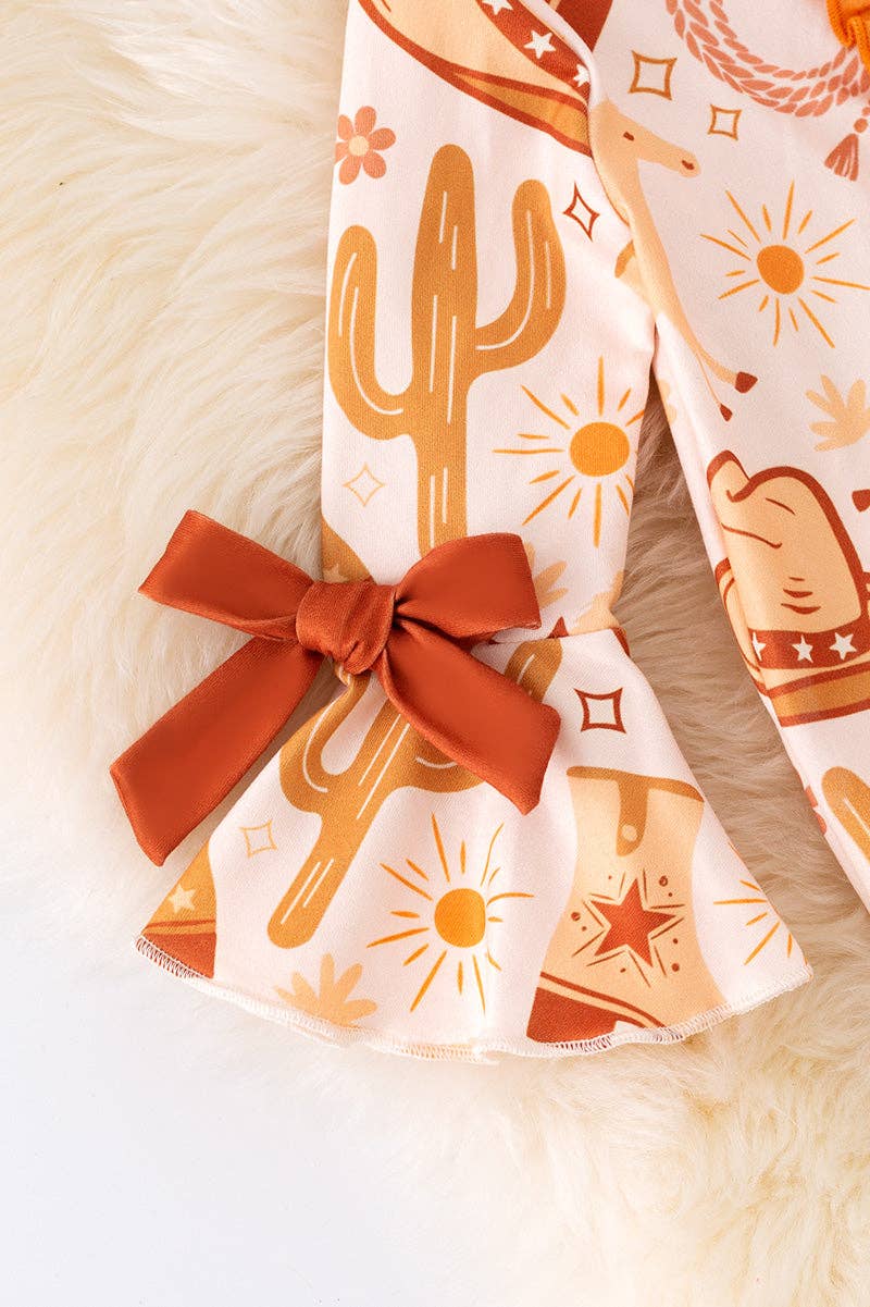 This multi Western printed baby bodysuit features charming bell sleeves that add a stylish touch to your little one’s wardrobe. Crafted for comfort and ease, it offers a soft fit ideal for delicate skin while providing freedom of movement. Perfect for everyday wear or special occasions, this bodysuit combines unique design with practical functionality.