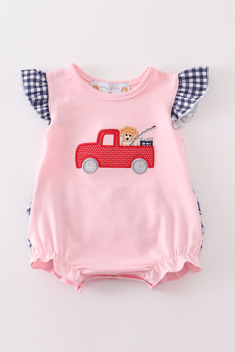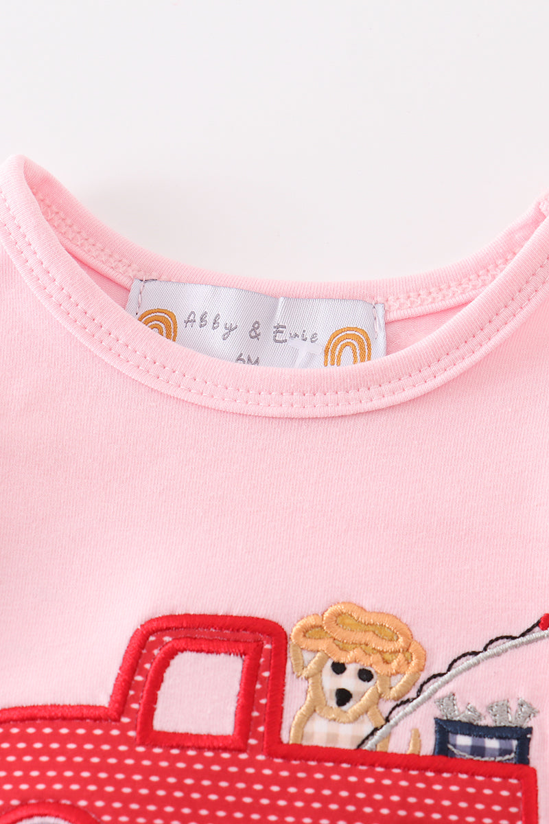 Get hooked on this adorable Pink Fishing Puppy Applique Girl Bubble! Perfect for your little angler-to-be, this bubble features a playful puppy applique and a fun fishing motif. Made with high-quality fabric for comfort and durability. Reel in this cute outfit today!
