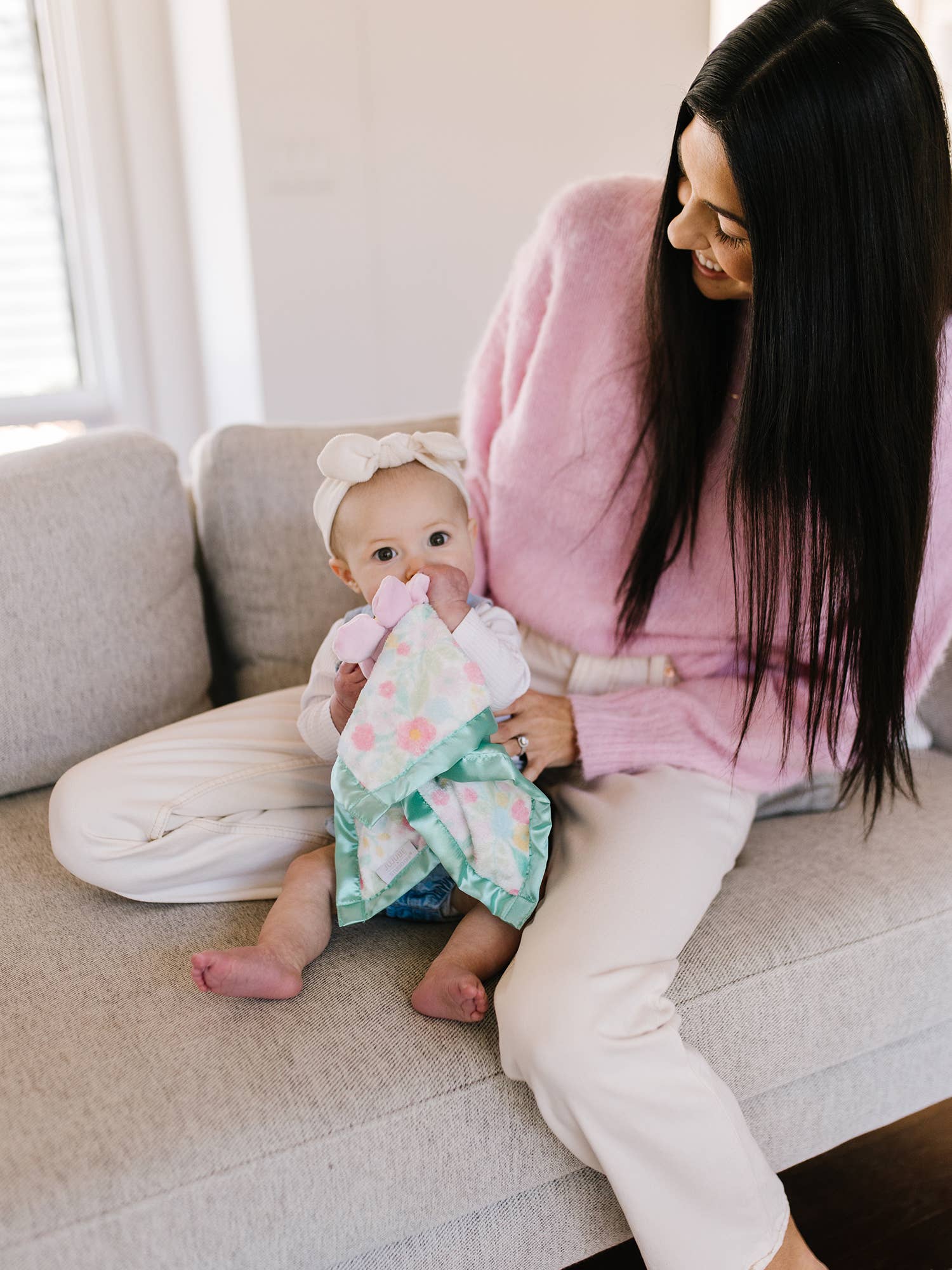 Meet your baby's new BFF! The soft and soothing Security Blanket from JuJuBe x Studio Oh! makes an irresistible companion for your little one and a treasured keepsake for years to come. With a plush character sitting atop a handkerchief-style fleece blanket and silky satin trim, it's ideal for tiny hands and cozy cuddles. The machine-washable blanket is perfectly portable at home and on the go so Baby can keep calm and carry on. • Includes a plush character atop a petite handkerchief-shaped blanket with coordinating designs • Features ultra-soft fleece with satin trim and underlay to provide warm, soothing comfort • Is an ideal size for cuddles at home or on the go Blanket: 15.5"W × 15.5"L 100% polyester, with satin trim and underside; plush character matches blanket artwork Machine washable