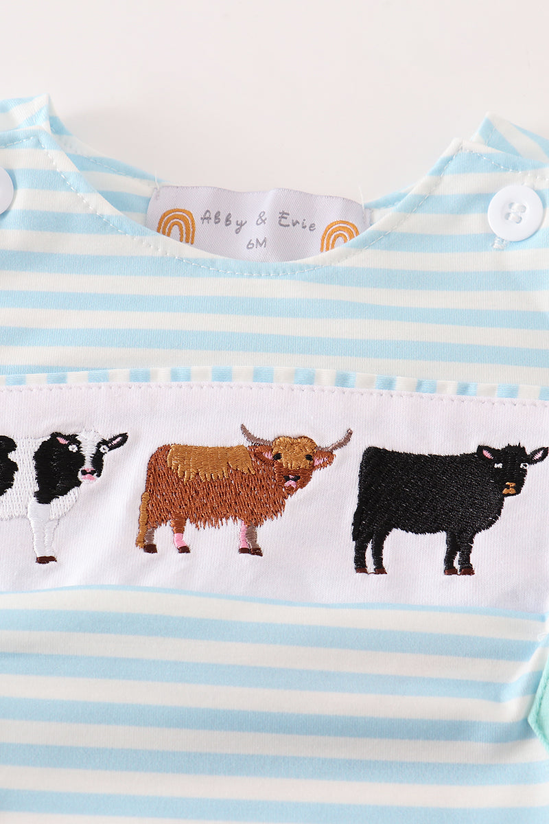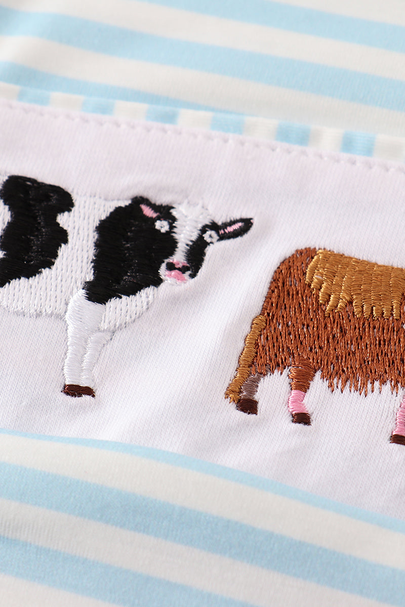 Yee-haw! This Sky Cow Embroidery Boy JonJon will have your little one lookin' mighty stylish. With its unique cow embroidery and playful sky blue fabric, this outfit is perfect for any adventure. Giddy up and snag one now!
